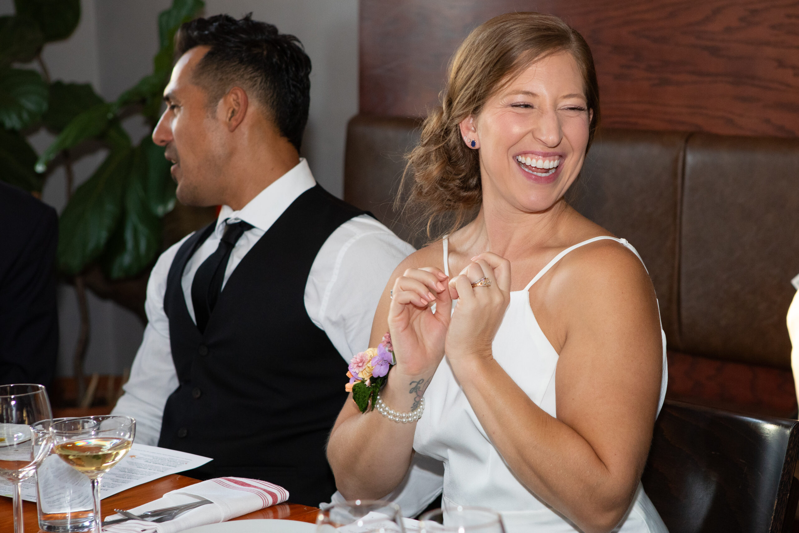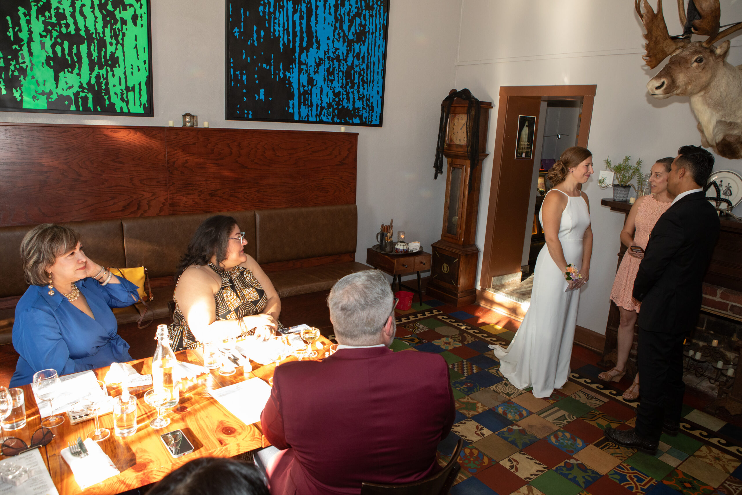 The restaurant setting also allows weddings to flow seamlessly into a shared dining experience. Instead of a traditional reception hall, guests enjoy a thoughtfully prepared meal together, making the celebration feel more like a family gathering than a formal event.