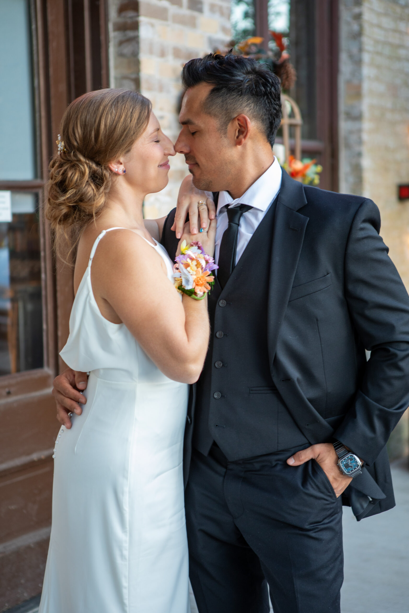 Before the ceremony, we took a few relaxed wedding portraits around Bastrop. October’s fall tones framed the couple beautifully, with golden leaves, textured brick, and charming small-town scenery creating a timeless backdrop. Doing portraits before the ceremony allowed Vanessa and Luis to stay fully present later in the day, without feeling rushed or pulled away from their guests.